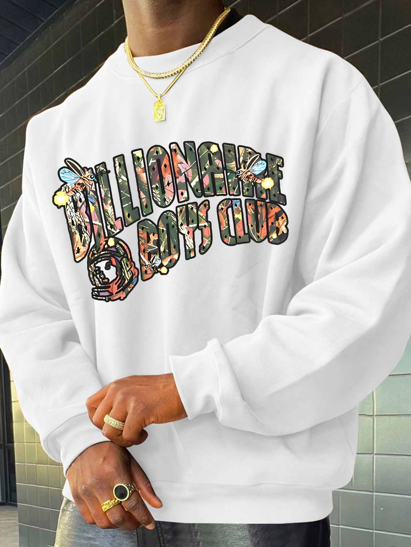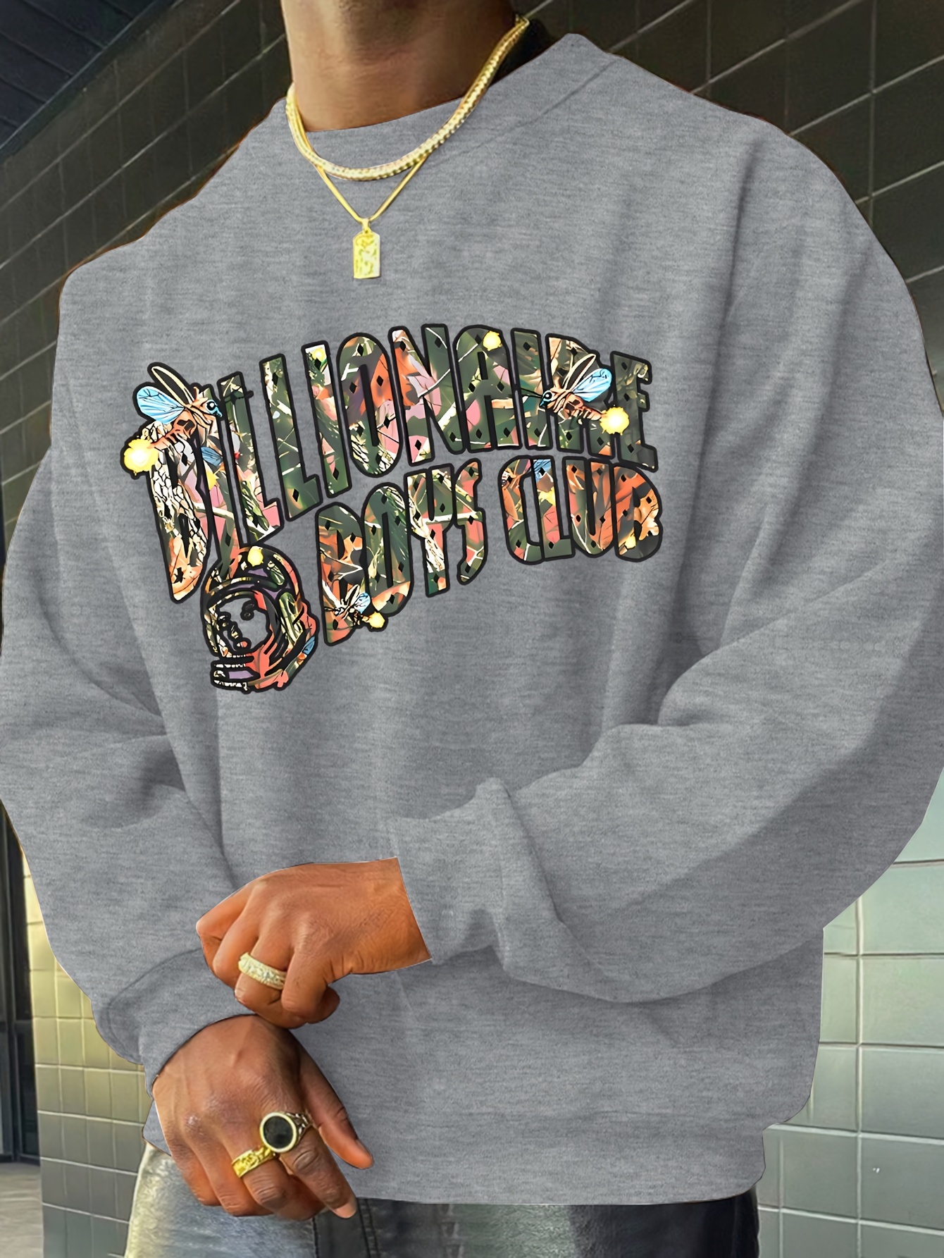 Featuring Textures Design Letter BOYS CLUB Printed Men's Crew Neck And Long Sleeve Sweatshirt, Casual Style, Breathable, Comfortable, Stylish Street Fashion Pullover Sweatshirt