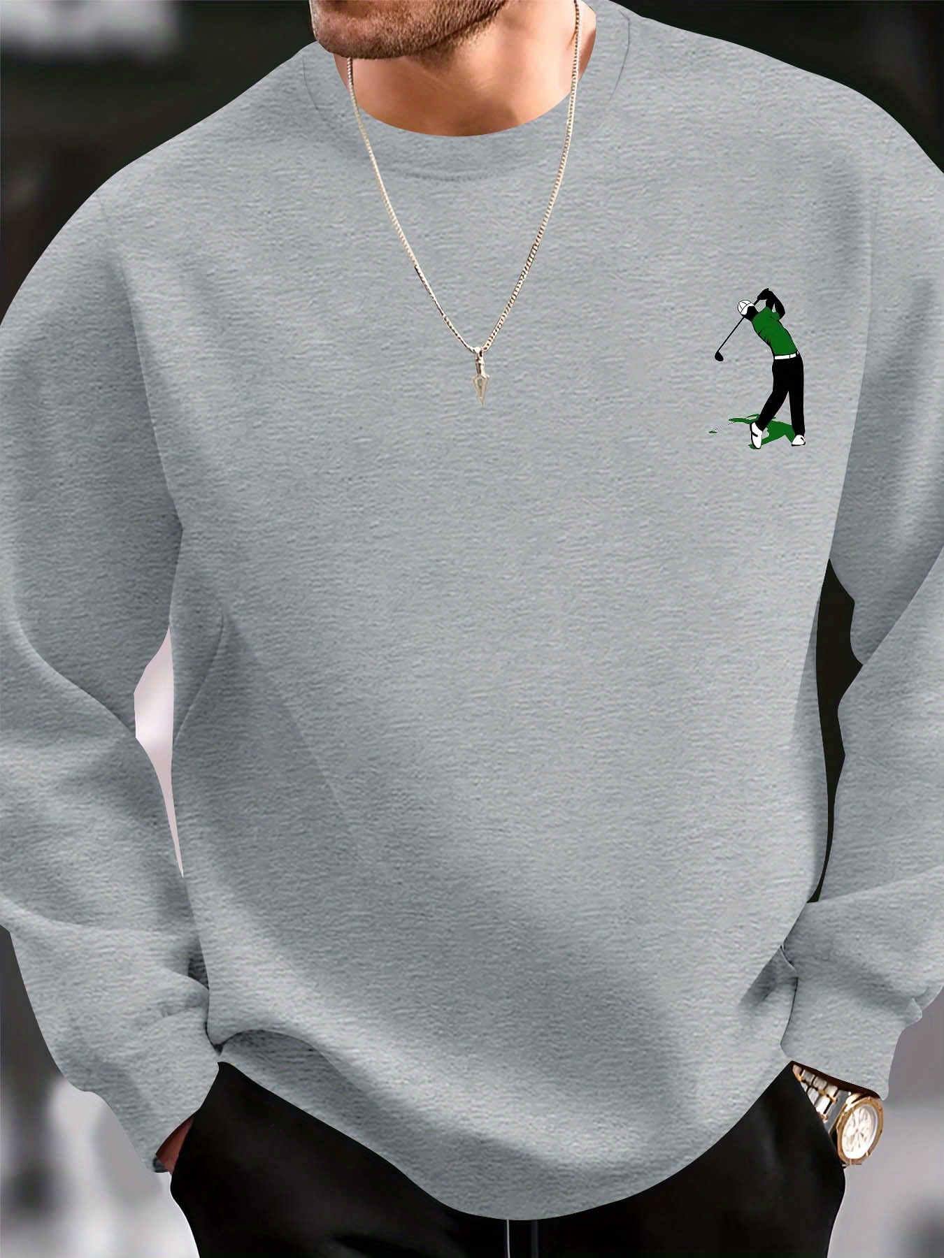 Men's Casual Golf Print Crewneck Sweatshirt - Relaxed Fit, Polyester Knit, Machine Washable, Fall/Winter Fashion