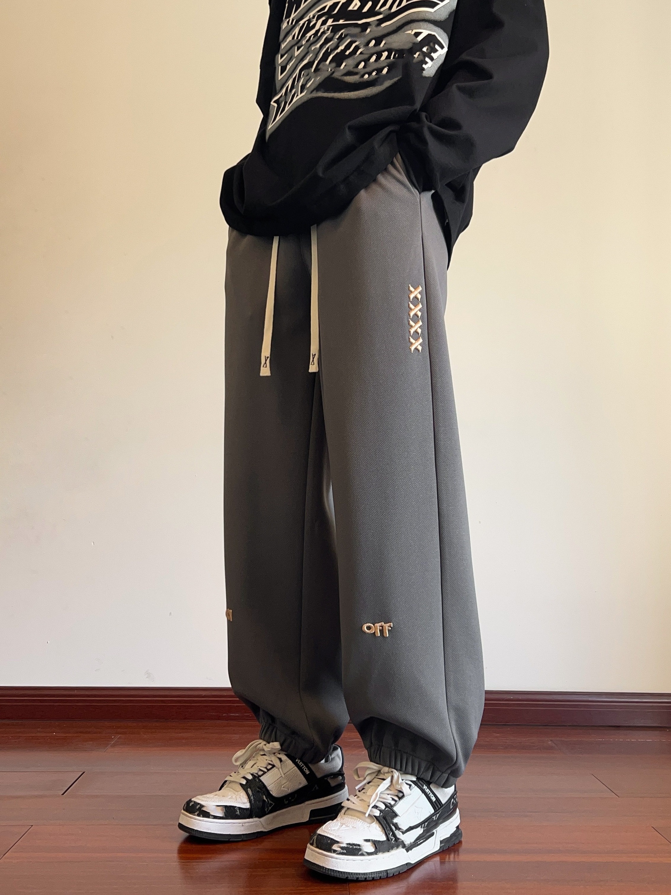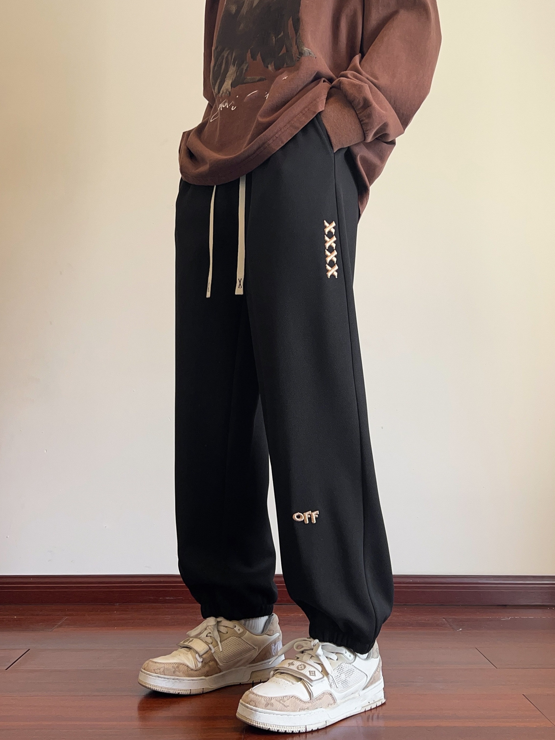 Men's Casual Joggers with Embroidered Design - Comfy Drawstring Sweatpants for Spring & Fall, Versatile Loose Fit
