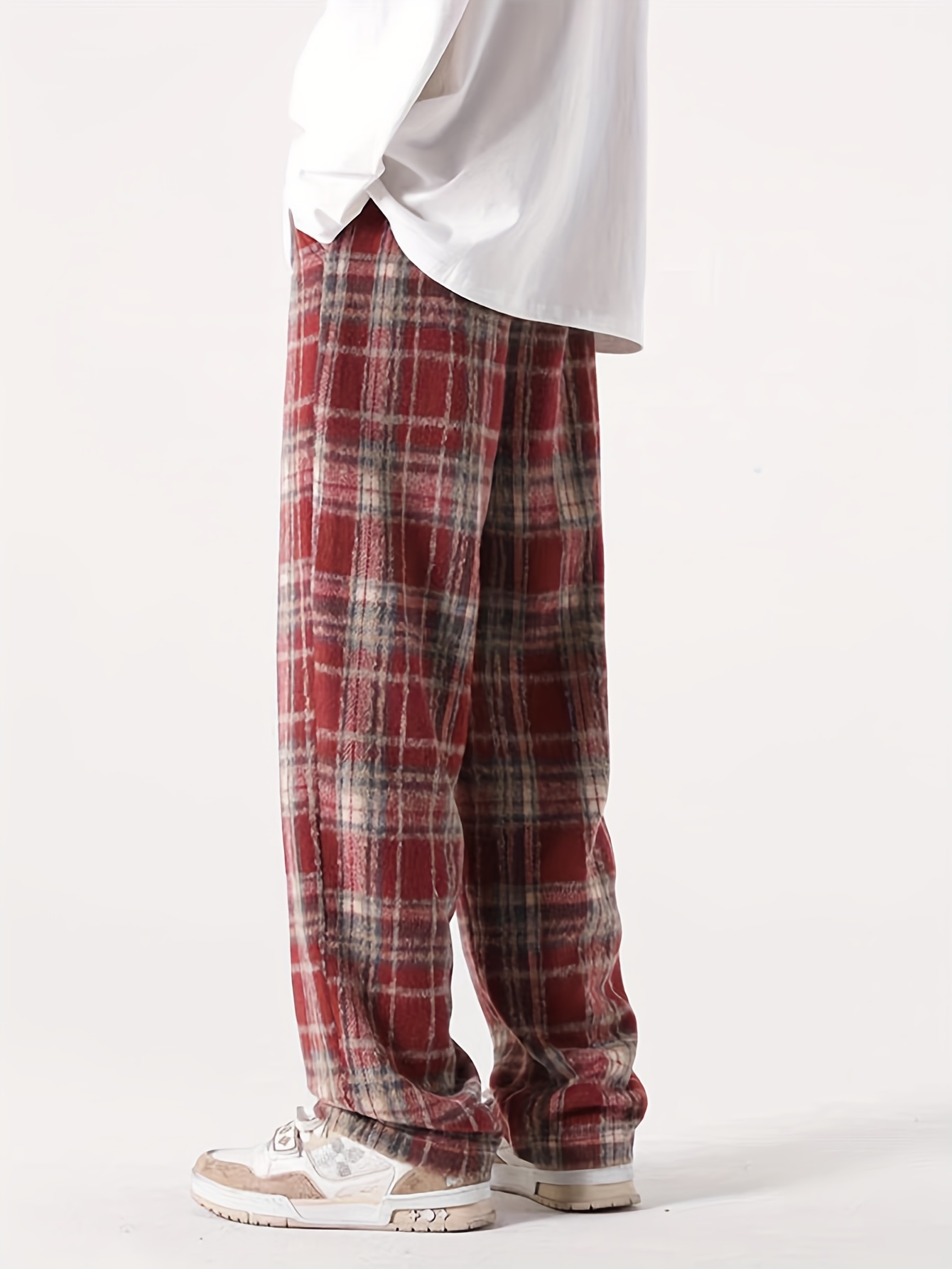 Men's Loose Fit Plaid Trousers, Breathable Comfort, Drawstring & Pockets