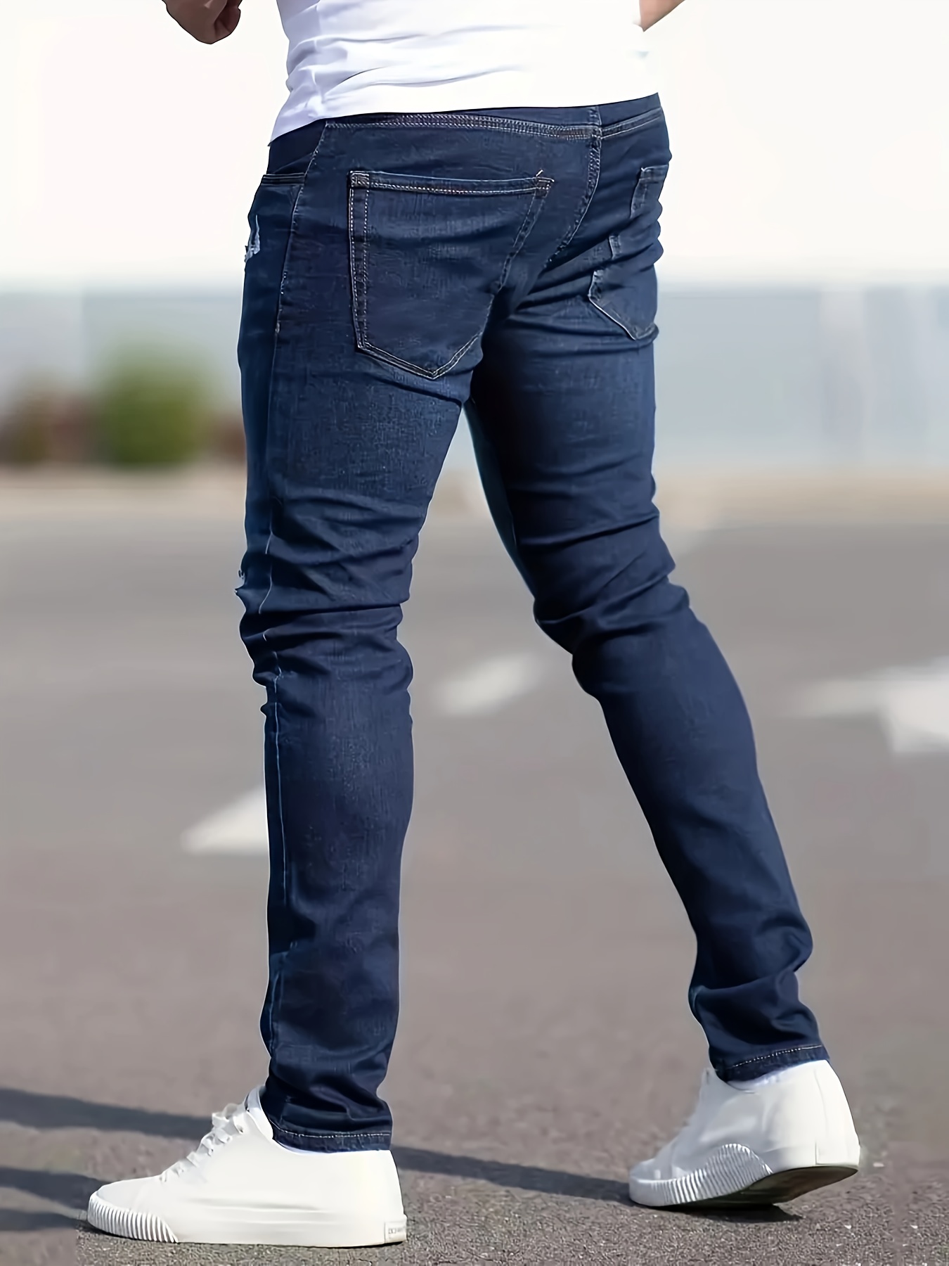 Slim Fit Ripped Jeans, Men's Casual Street Style Distressed Medium Stretch Denim Pants