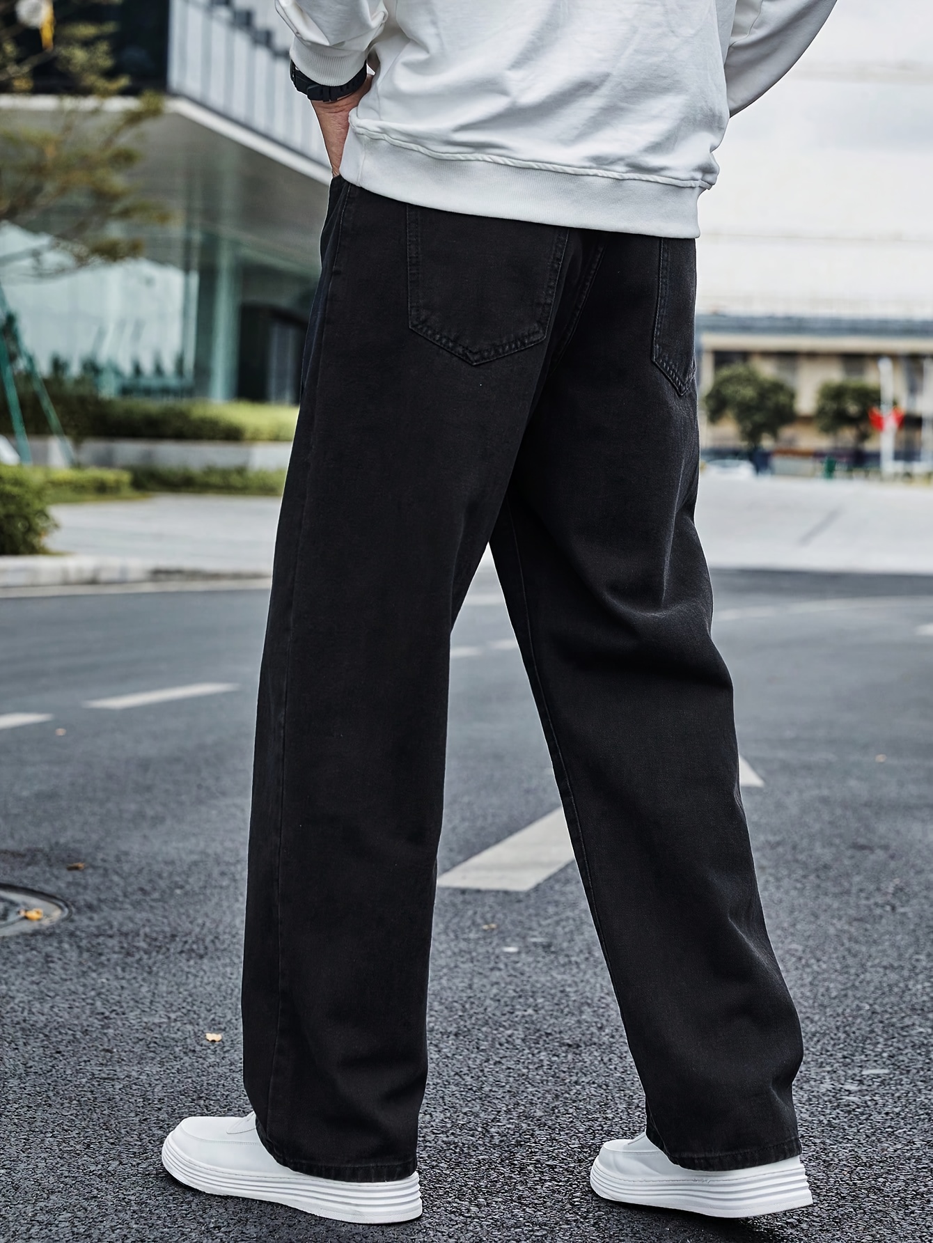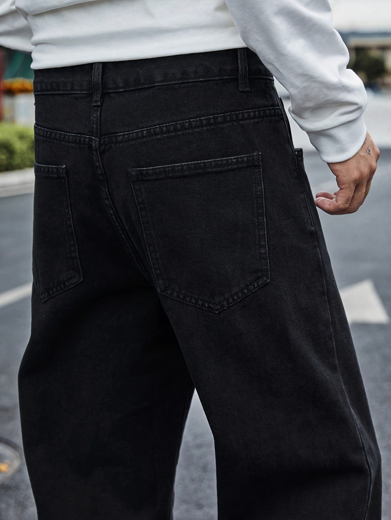Vintage-Inspired Men's Casual Jeans with Multiple Pockets - Rayon Blend, Loose Fit, Street Style, Machine Washable