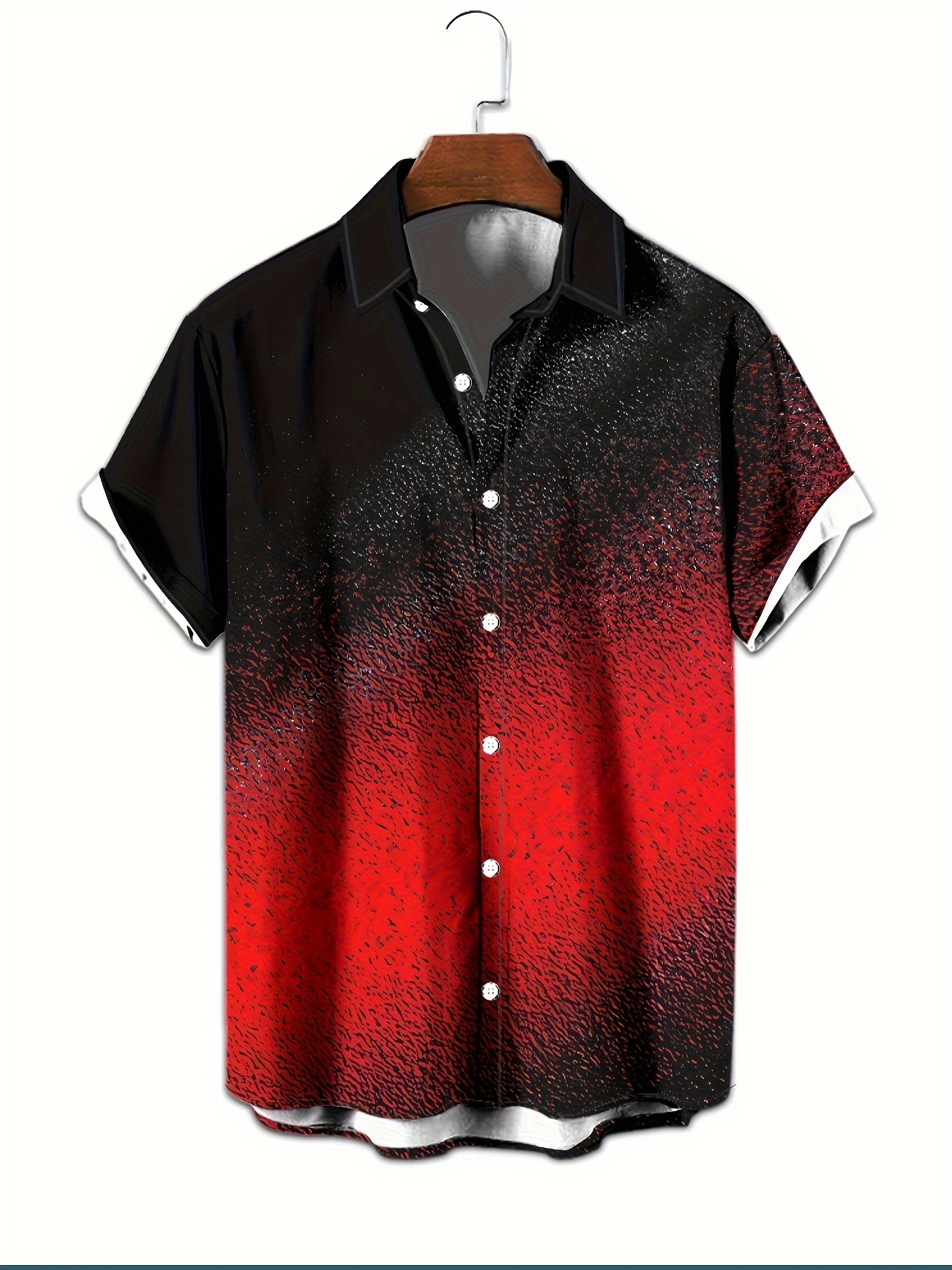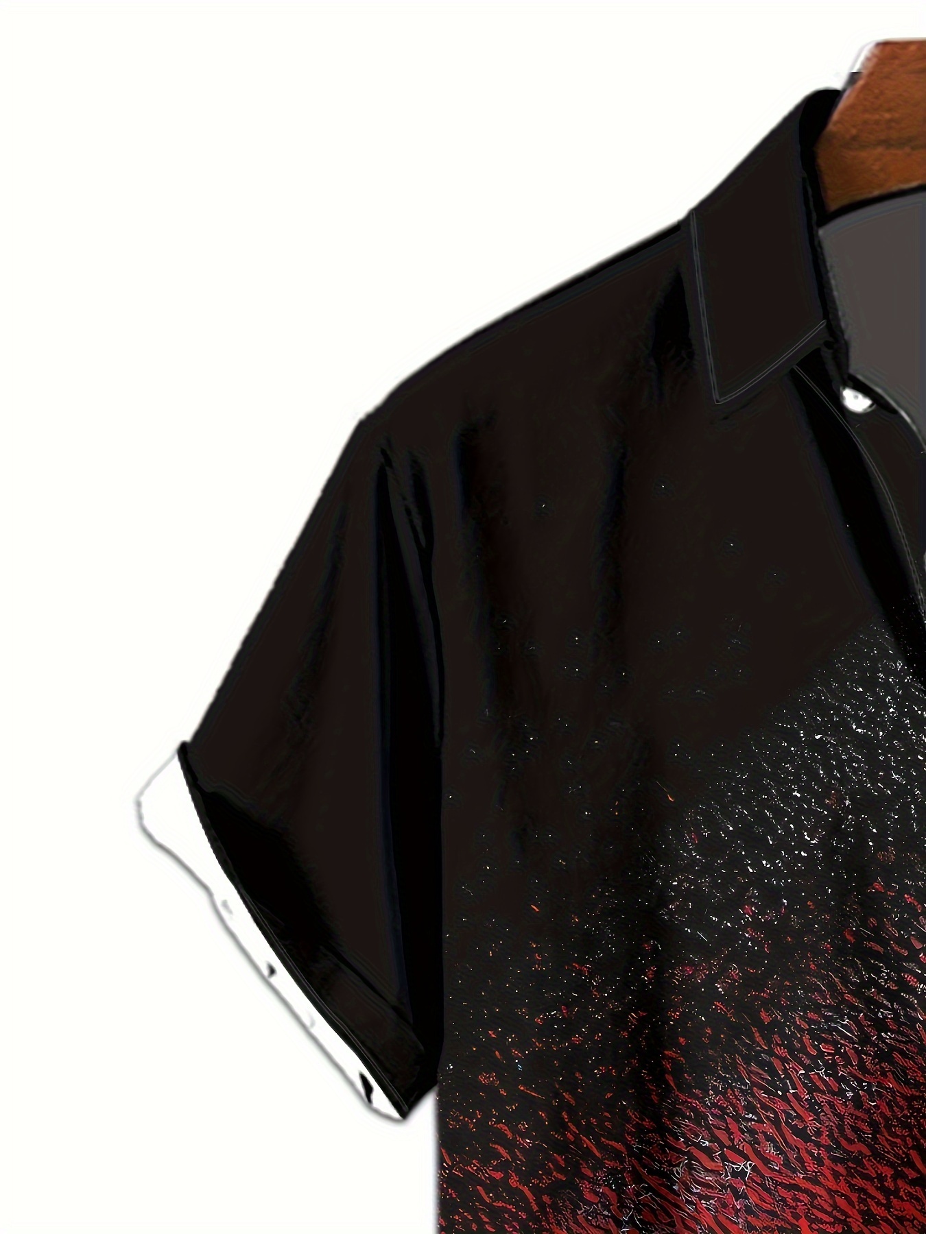 Men's Casual Short Sleeve Shirt with 3D Geometric Print - Polyester, Machine Washable, Non-Stretch Fabric