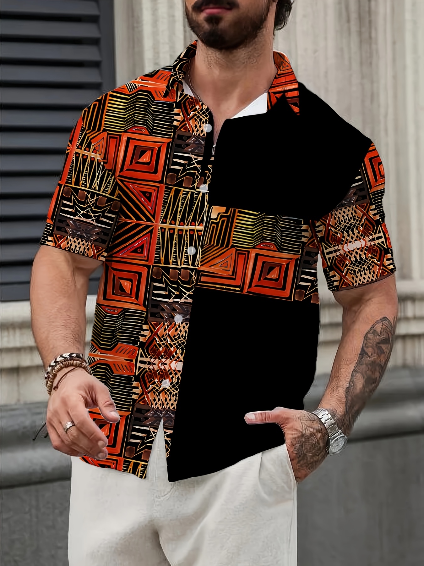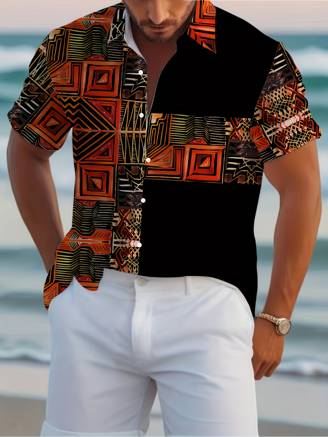 Men's Novelty 3D Geometric Print Button-Up Shirt - Casual, Breathable Polyester, Machine Washable