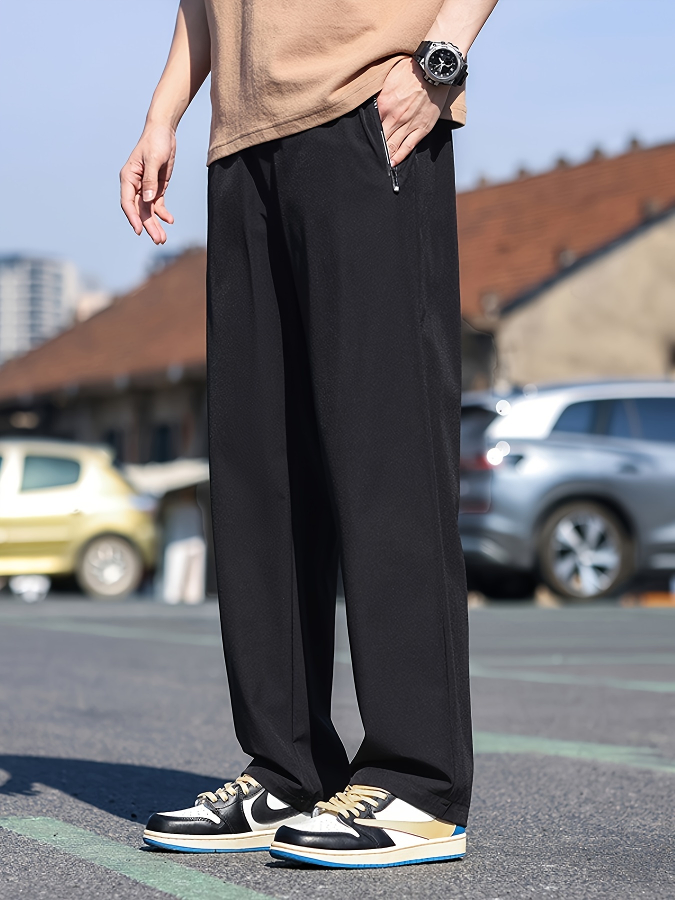 Men's Casual Pocket Joggers, Straight Leg Drawstring Loose Fit Long Sports Pants For Spring Autumn