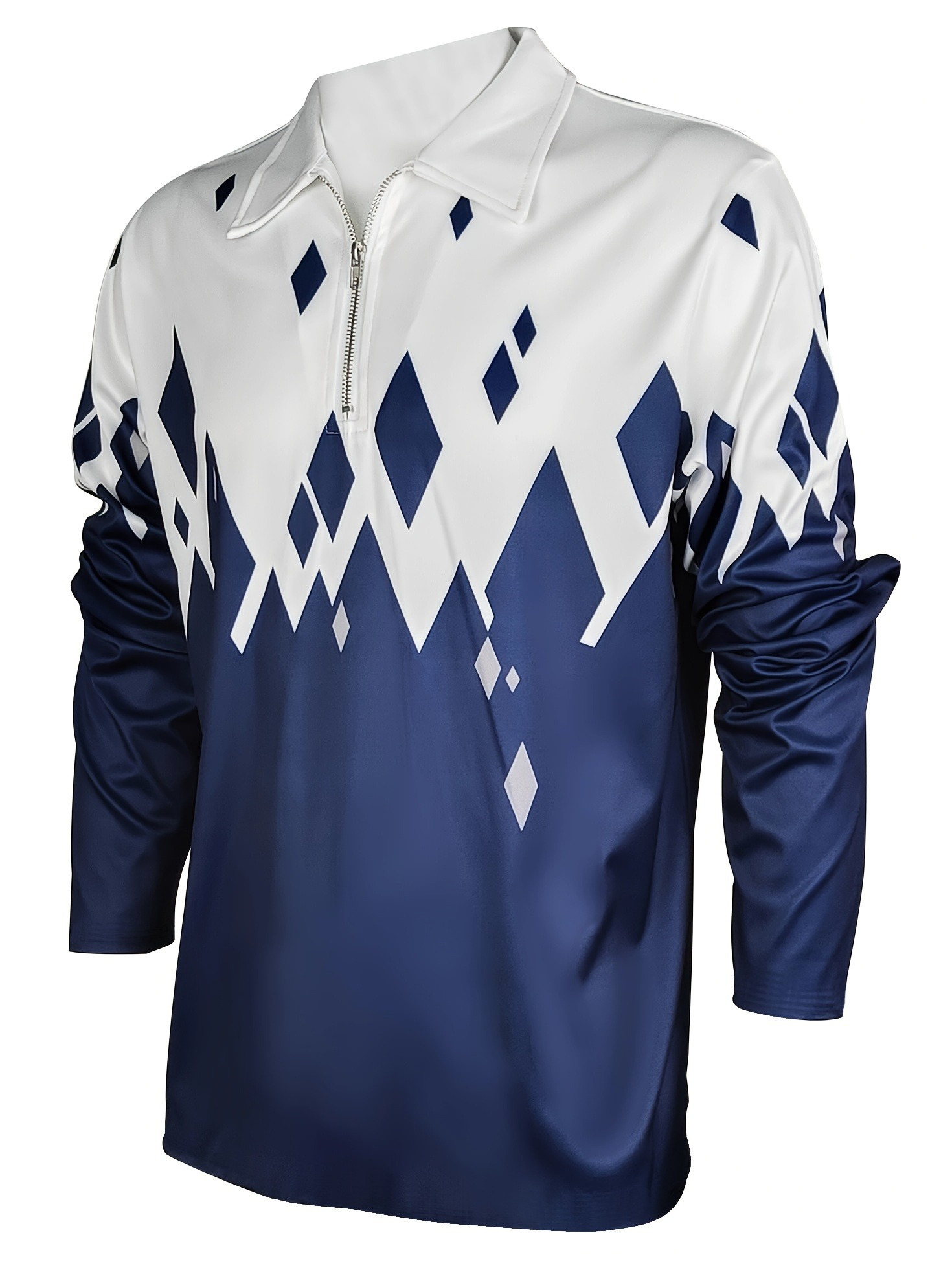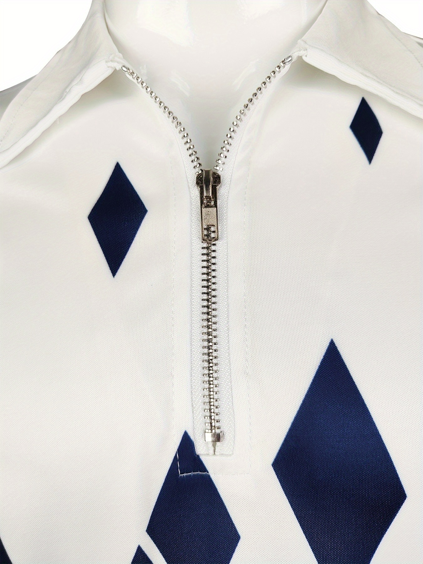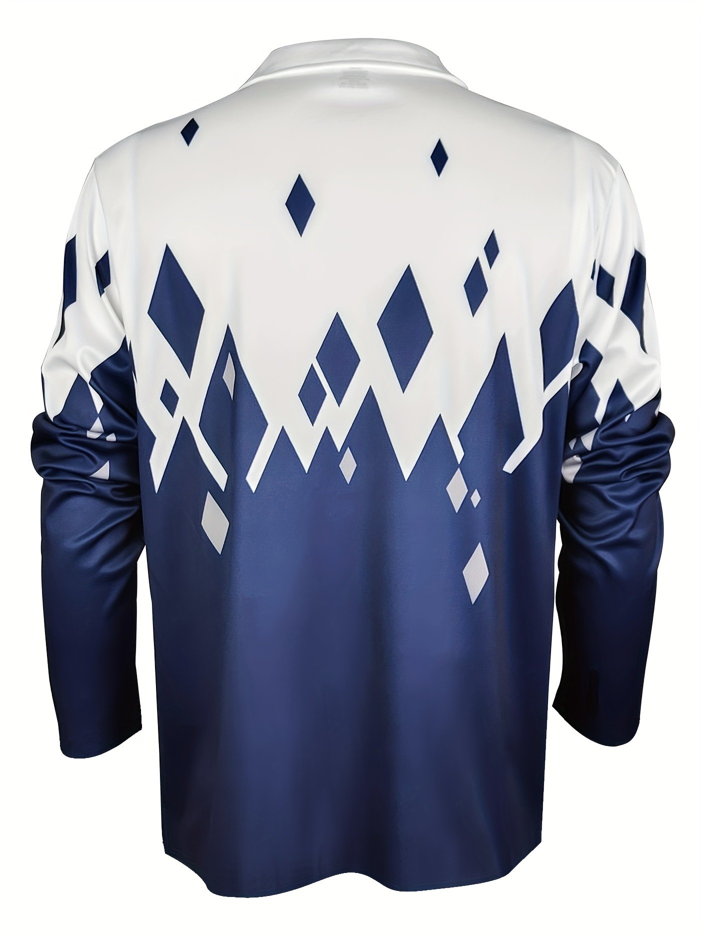 1pc Men'S Geometric-Patterned Polyester Golf Shirt - Knit Fabric with Slight Stretch, Regular Fit, Lapel Collar, Button Details, Long Sleeve, Flip Collar for Fall/Winter - Ideal for Outdoor Sports & Parties