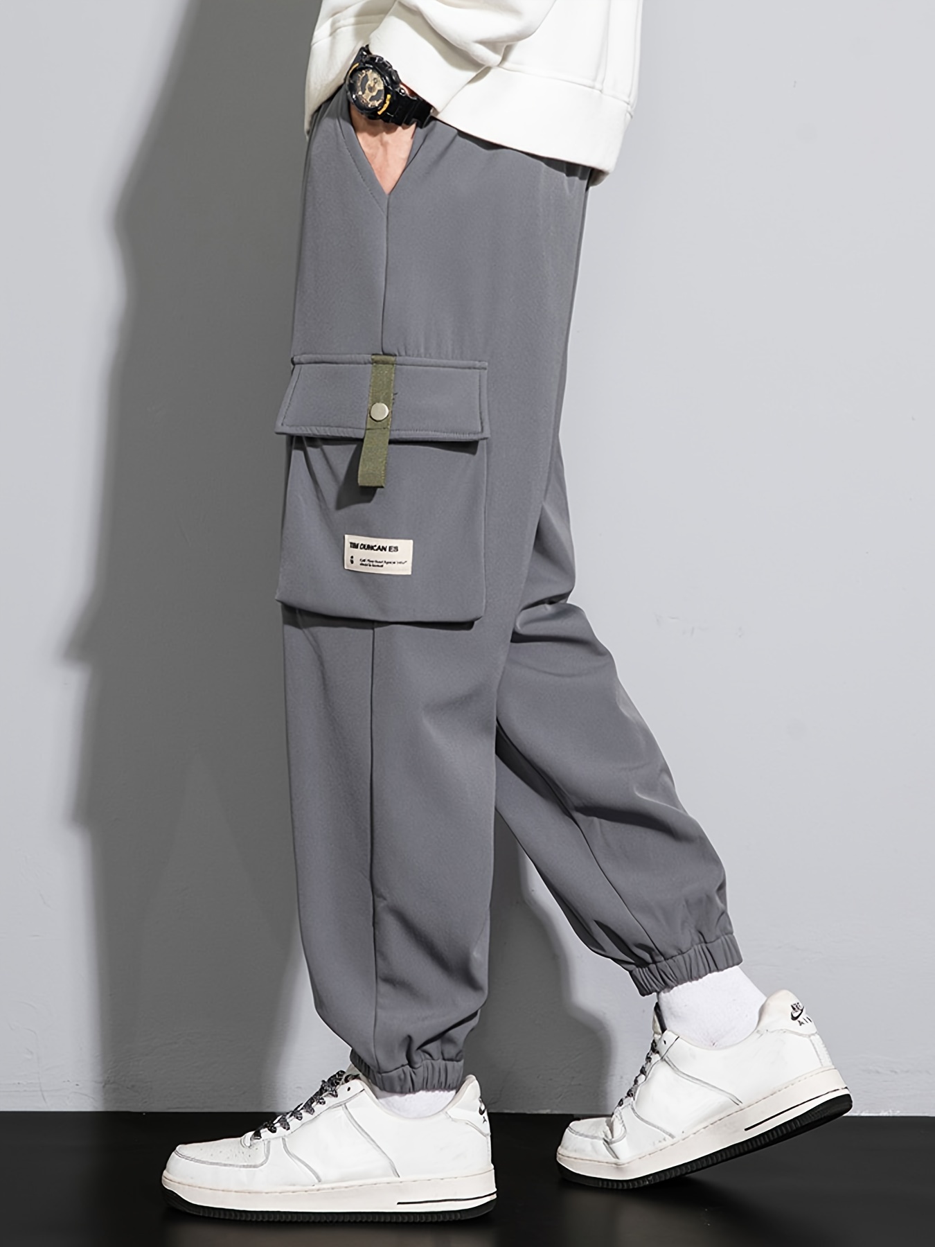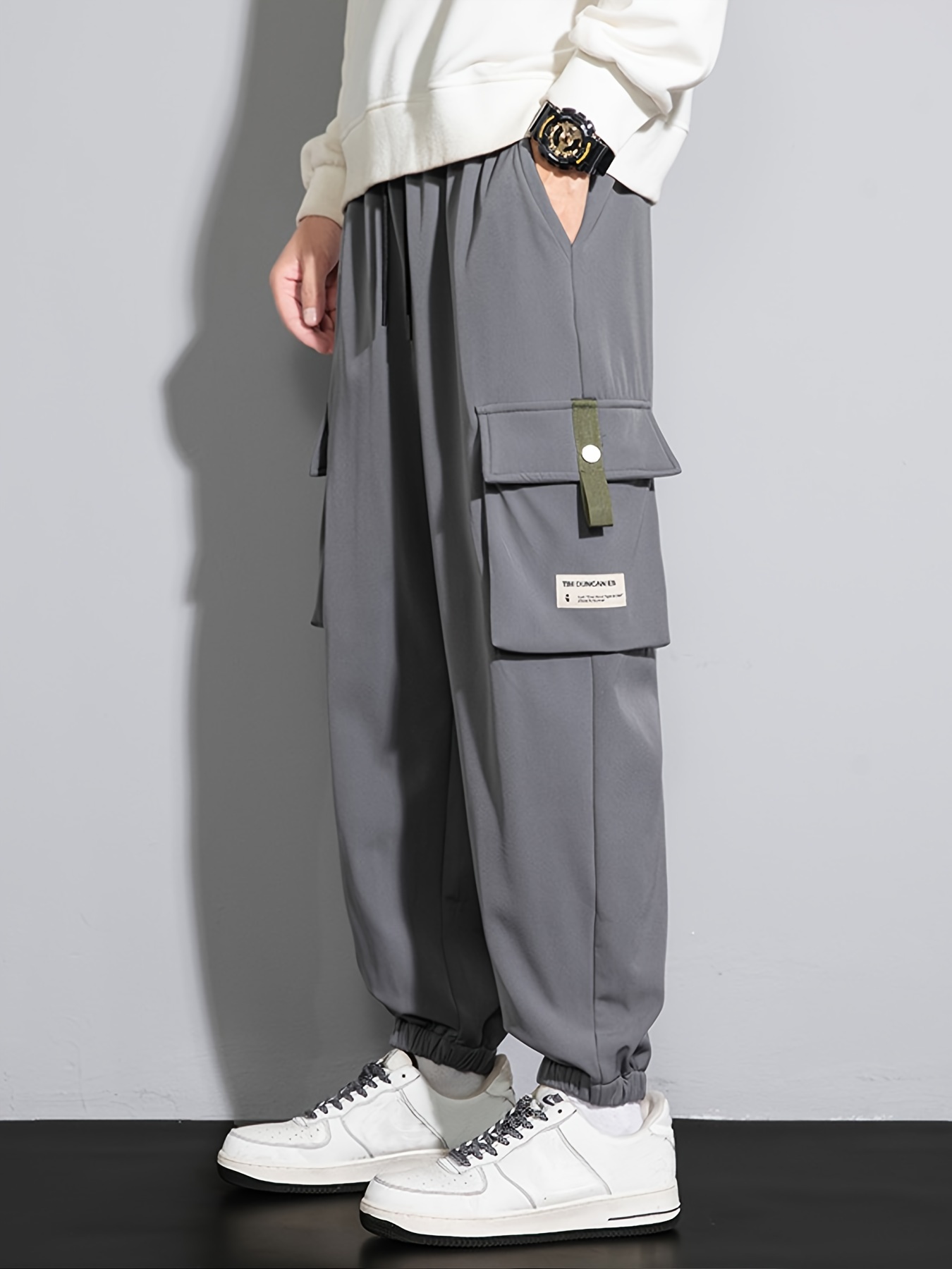 Men's Casual Flap Pocket Thin Cargo Pants, Chic Loose Fit Joggers For Outdoor Activities