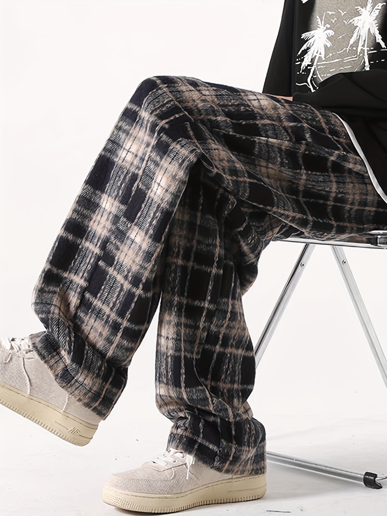 Men's Loose Fit Plaid Trousers, Breathable Comfort, Drawstring & Pockets